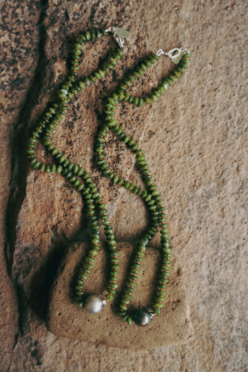 Beadstrand -- Russian Jade and Tahitian Pearl -- Hand Knotted Silk