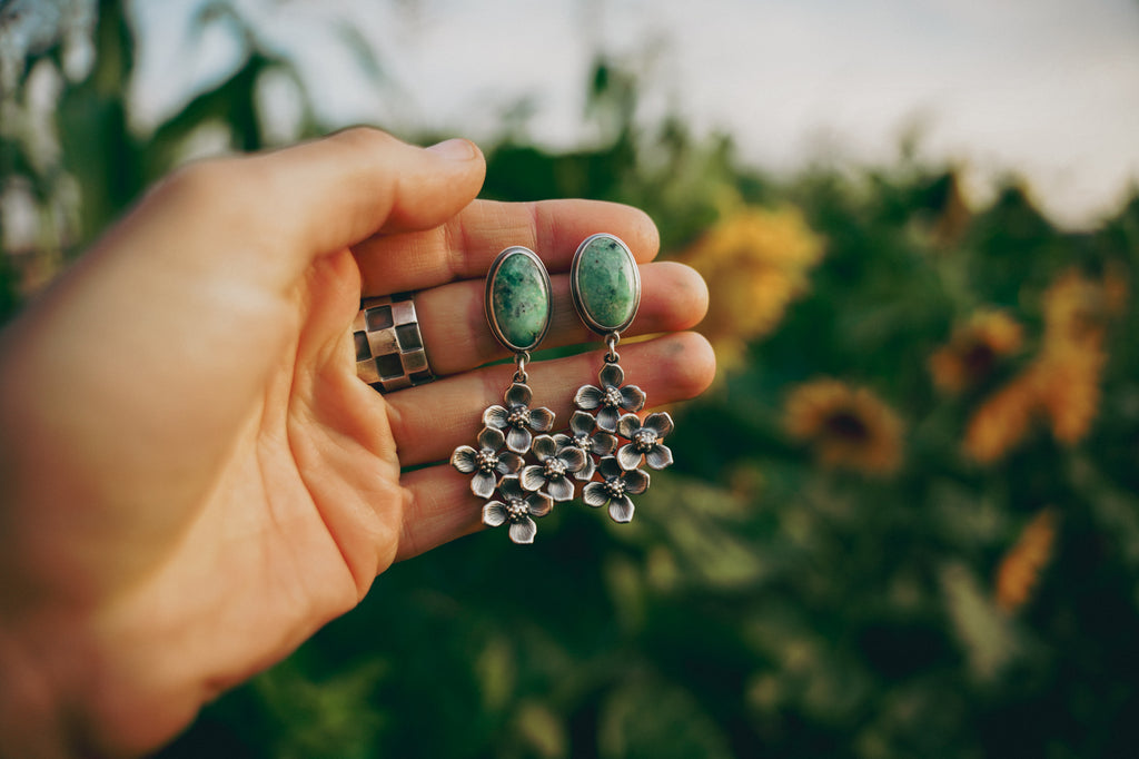 Earrings of all shapes and sizes, made by hand to reflect the seasons, the land, and the colors of nature.