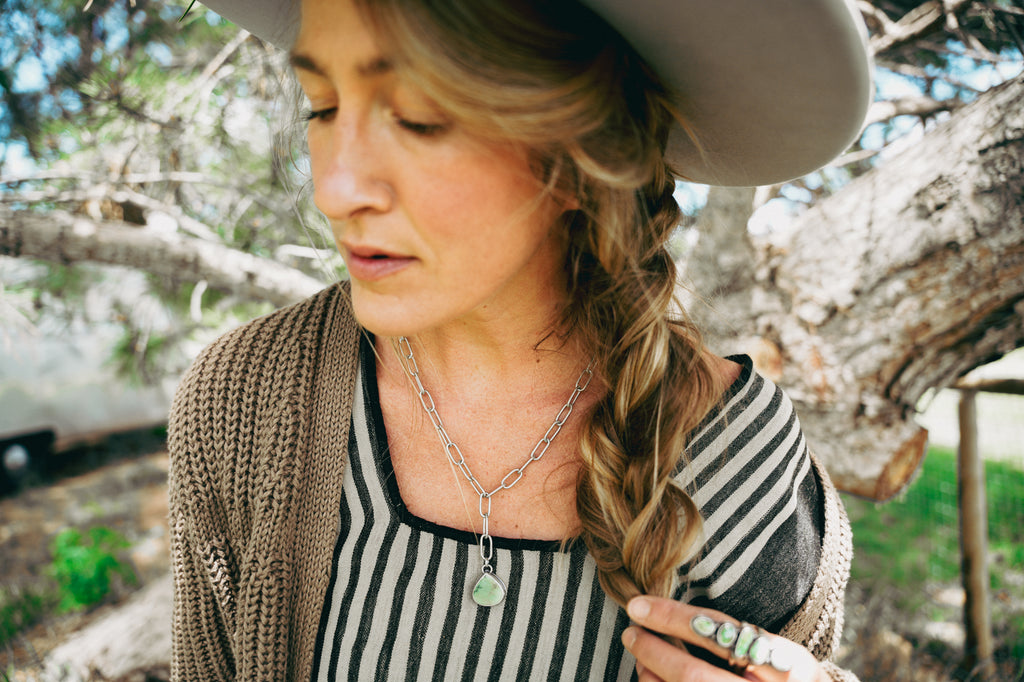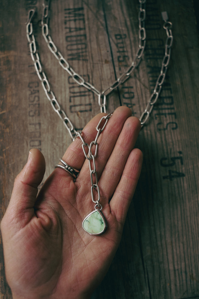 Bare and Strong Necklace -- Variscite and Handmade Paperclip Chain