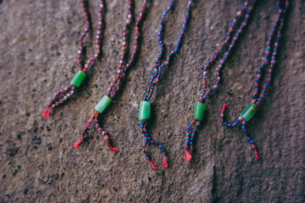 Please note: Try to keep your bead strand dry. When silk becomes saturated, it can stretch out and change the structure of your necklace. If you do get it wet, simply lay it flat to dry completely before you wear it again.