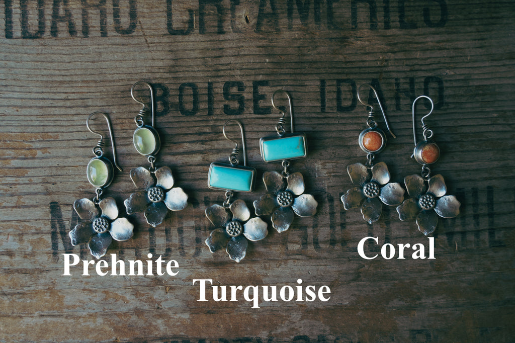 Apple Blossom Earrings -- Coral, Prehnite and Turquoise