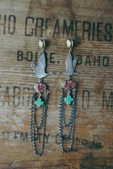 Wild Geese Earrings -- Turquoise and Cobalt Calcite