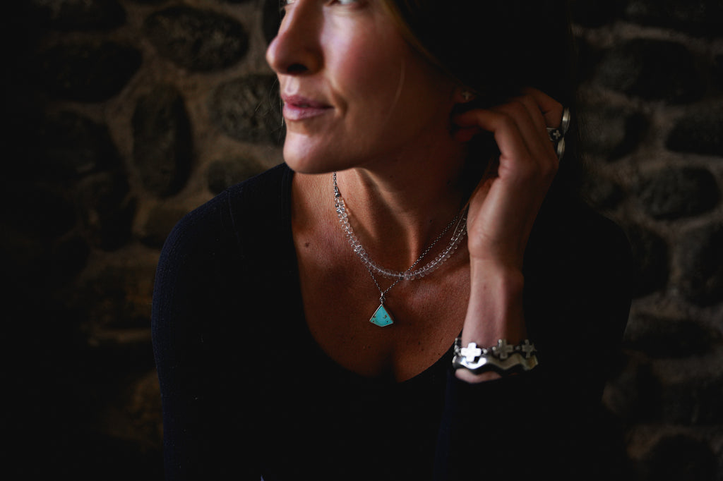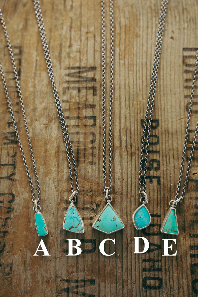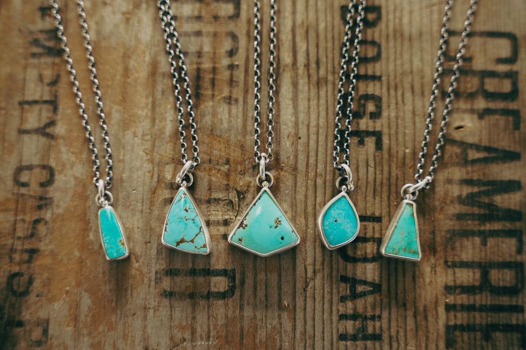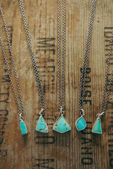Simple, easy wearing necklaces intended to be something sweet you put on and never take off. These necklaces feature Nevada Blue turquoise mined from the beautiful Great Basin here in the USA.