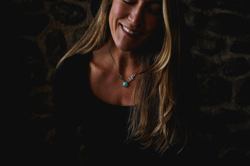 Another ode to the sagebrush sea, the place I do my living here in the West. Sweet little cuts of turquoise and variscite from the beautiful Great Basin here in the USA suspended between my little sagebrush sprigs. A little bit of peace and quiet and open space to hang around your neck.