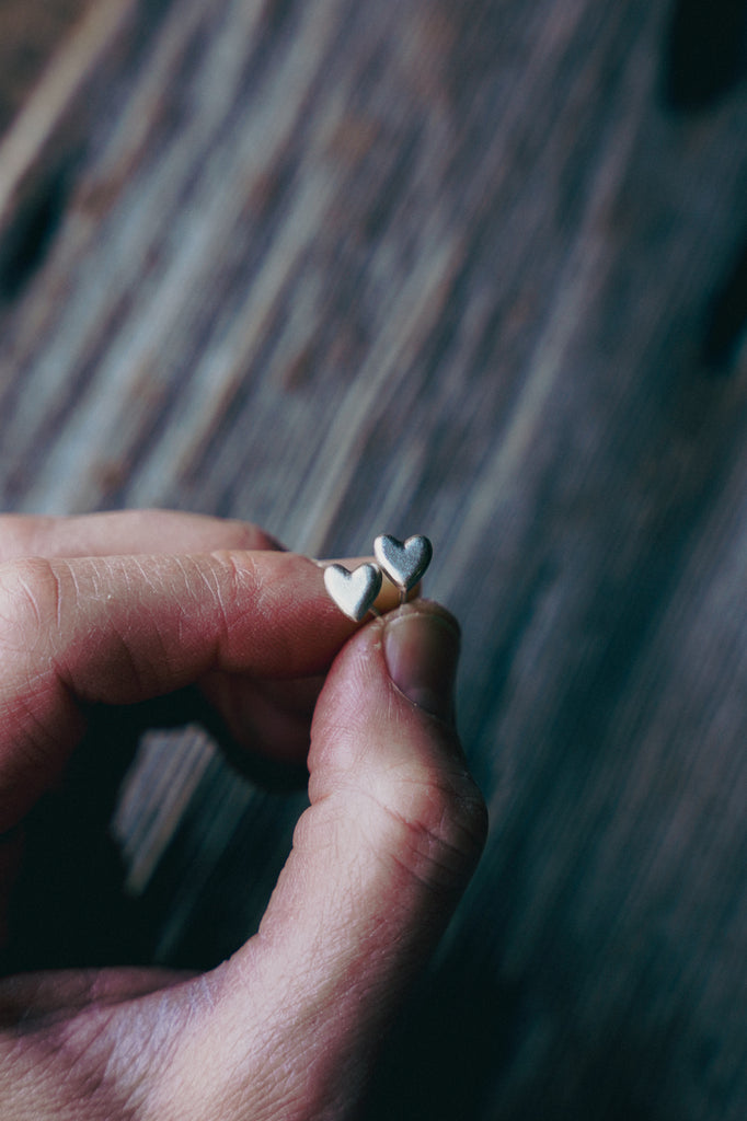 Close wearing, voluminous little heart posts. ALL sterling silver with oversized clutches so they won't stray from your ears. Perfect for filling a second piercing and lovely on their own.