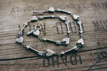 Chunky hearts and arrows in a full length chain that wears with a steady presence that feels absolutely beautiful, rich, enduring -- lovely on its own and amazing when layered with other pieces.