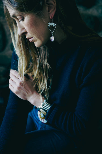 Well time has passed and I've made plenty of little wolf necklaces so I've branched out into wolf earrings. I love this motif and find it creeping into so much of my work lately.