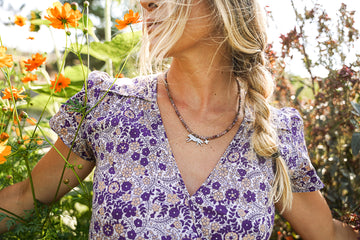 A sterling silver wolf built of two layers, carefully constructed and hand textured so it looks...FURRY...strung on gorgeous, EARTHY, ruby strands with one of my sterling square crosses. These necklaces are beautiful on their own and really lovely layered up with other pieces.