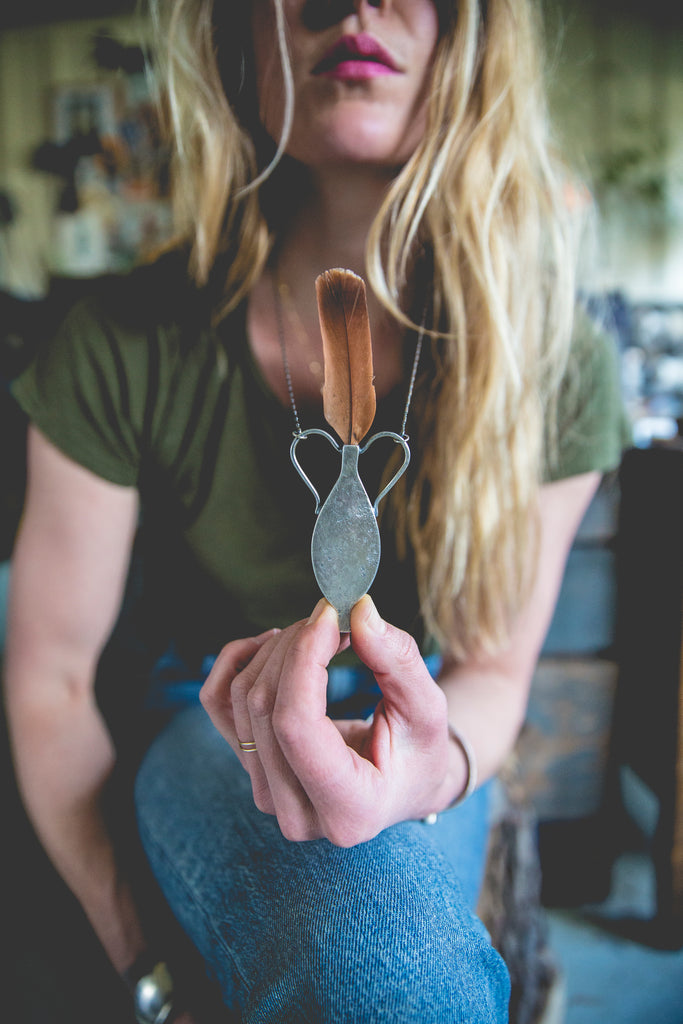 This pendant is indeed hollow so it also functions as a place to tuck Hungarian partridge tail feathers or you can fill it with water and put a sprig of sage in it. Ancient feeling and magical, too.