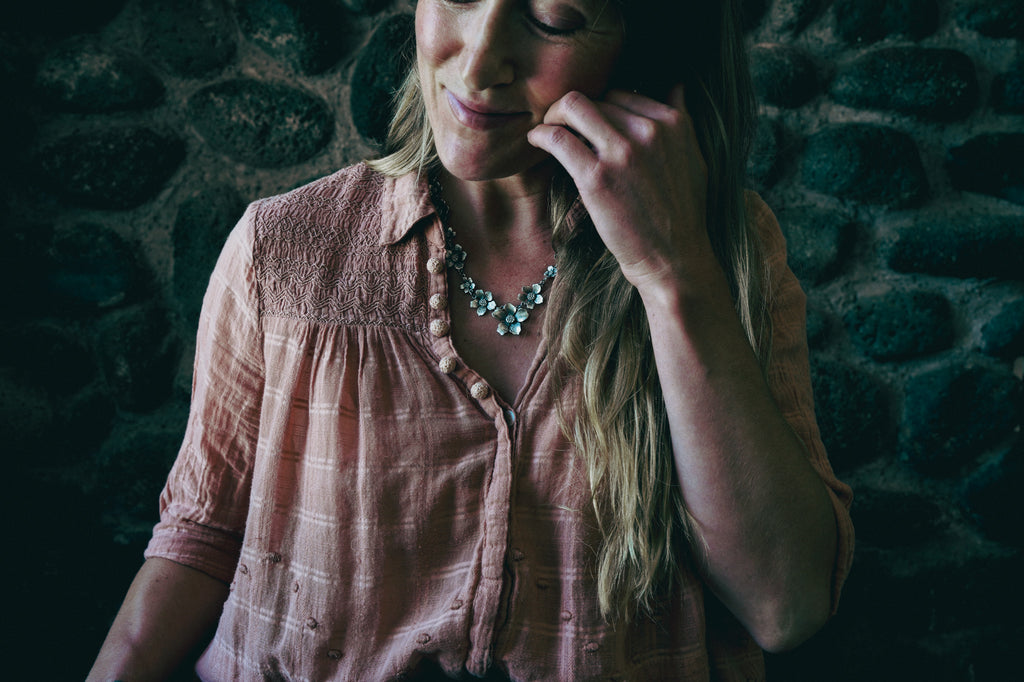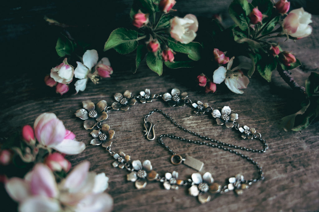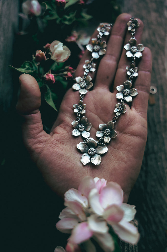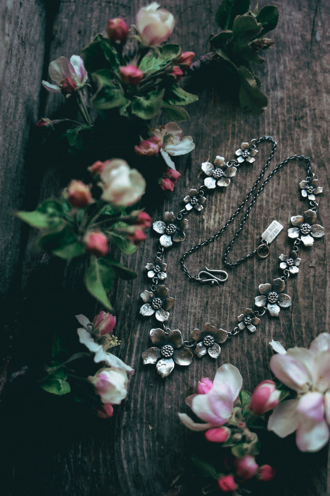 Simple, textural, dimensional sterling silver apple blossoms -- this necklace is so sweet and so easy to wear. Pure JOY.