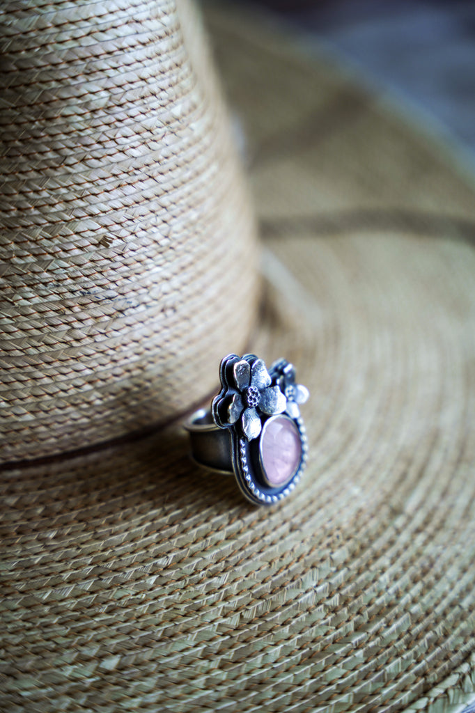 Apple Blossom Ring -- Size 6.75 Rose Quartz