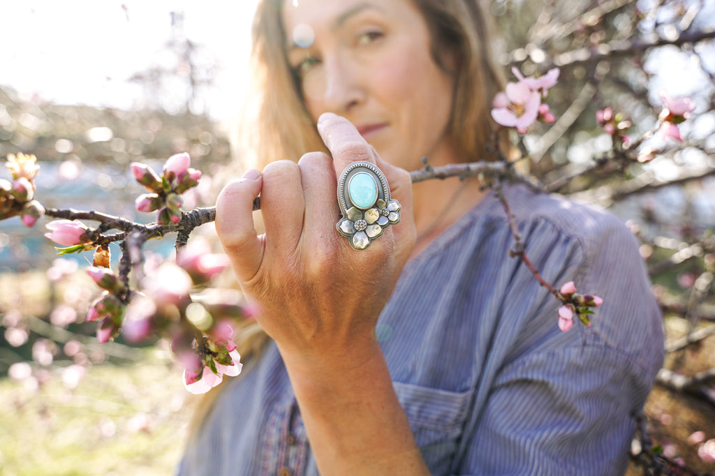 Apple Blossom Ring -- Turquoise -- Size 8.75
