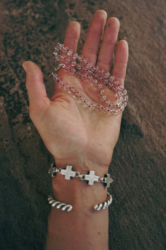Beadstrand -- Hand Knotted Silk -- Clear Quartz Spheres