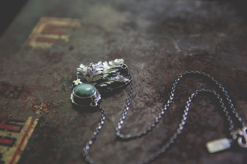 I’m still on a leaf kick over here — there’s an ocean of visual information in my gardens at the moment and I’m doing my best to draw on it! There's plenty of texture and dimension here as a bundle of leaves burst out the side of a slice of American turquoise. My signature square cross binds life to life: soil to flower, sun to earth, death to life, me to you, creator to created. Glory glory.