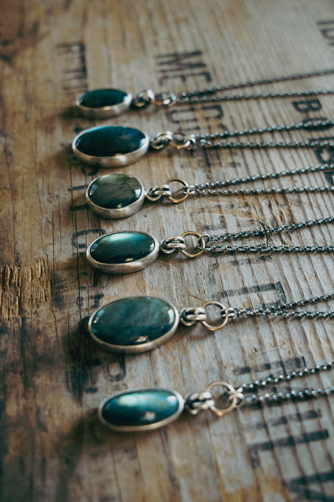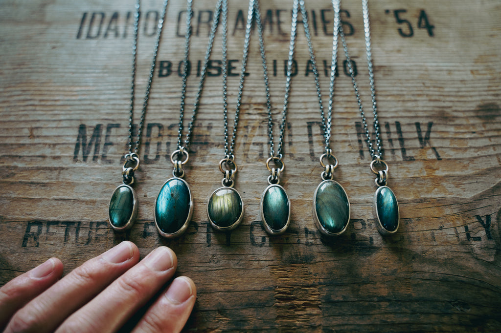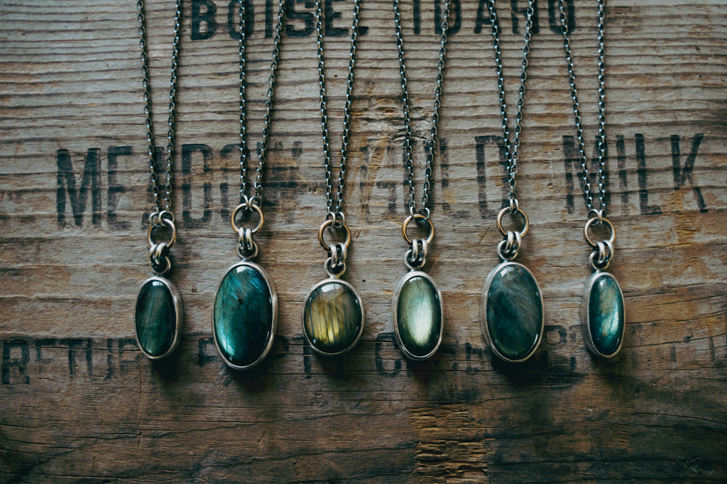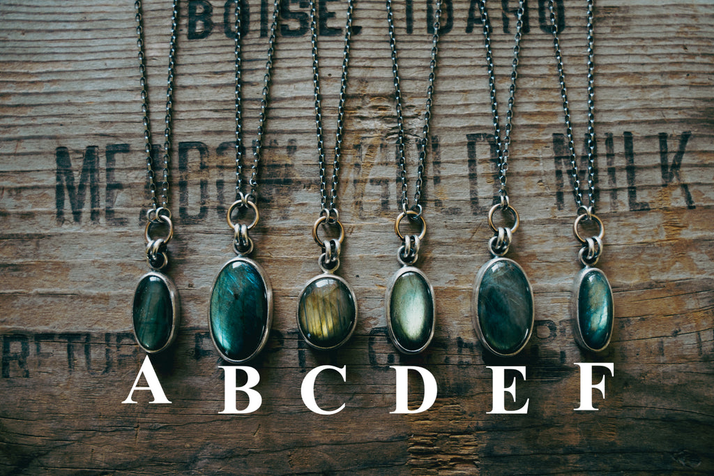 Here are some flashy little slips of labradorite set simply in sterling silver with bronze accents at the bail and clasp. These stones speak quietly of the mystery and beauty and the cosmos...they remind me of the Northern Lights and all the years of my life I spent living beneath an electric sky at home in Saskatchewan.
