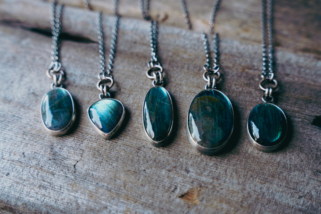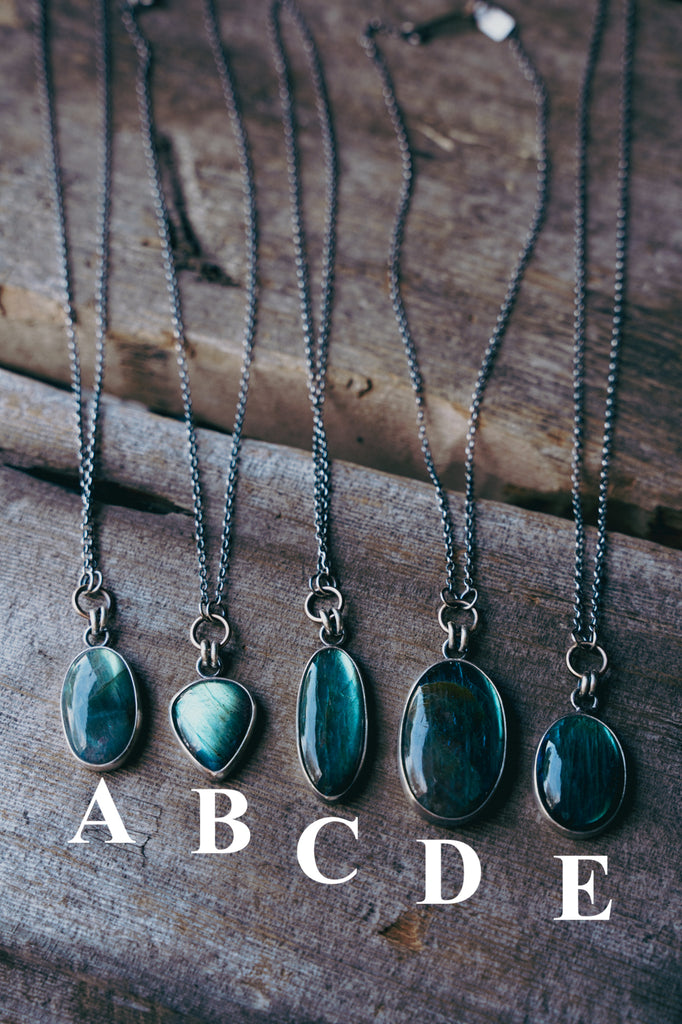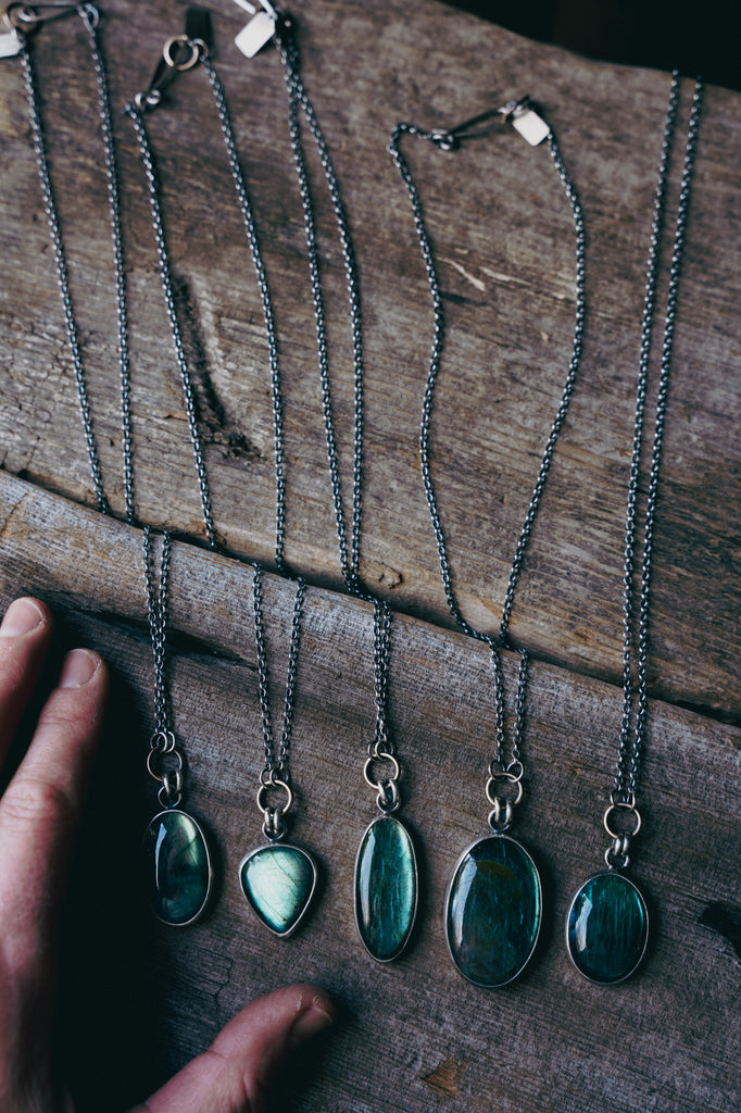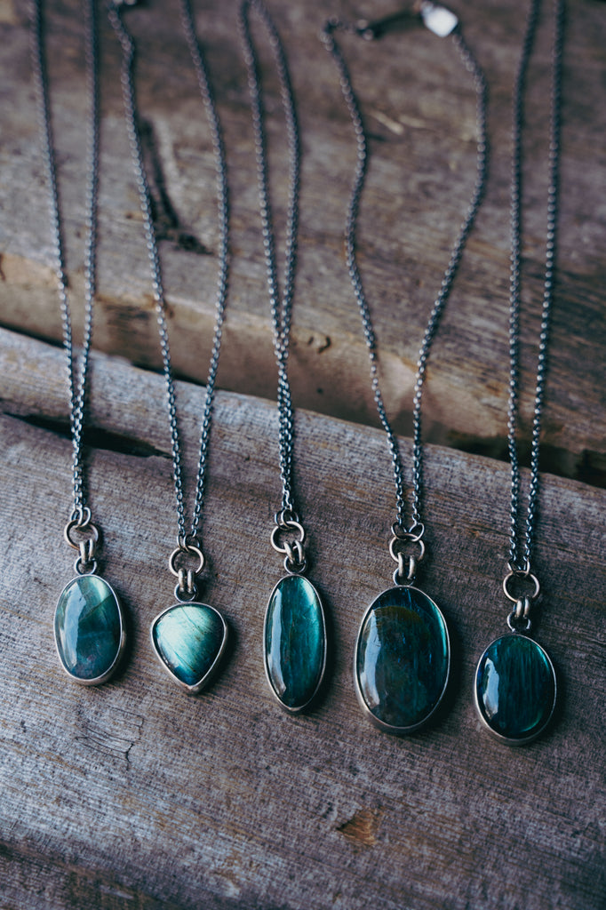 Here are some flashy little slips of labradorite set simply in sterling silver with bronze accents at the bail and clasp. These stones speak quietly of the mystery and beauty and the cosmos...they remind me of the Northern Lights and all the years of my life I spent living beneath an electric sky at home in Saskatchewan.