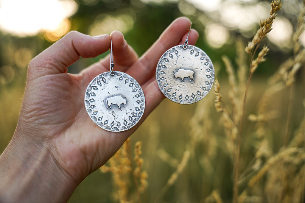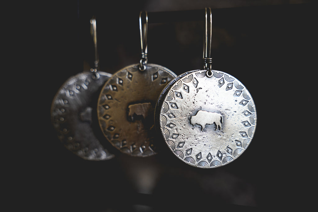 Textured and stamped by hand, decorated with bison appliqués, and finished by hand with the glowing satin sheen sterling silver deserves.