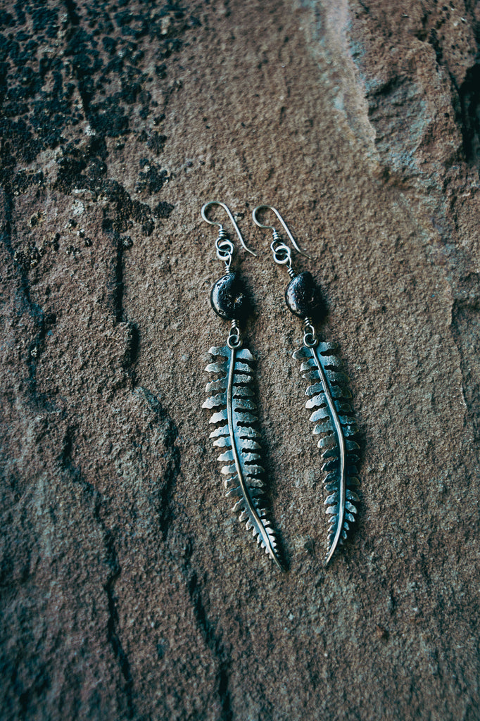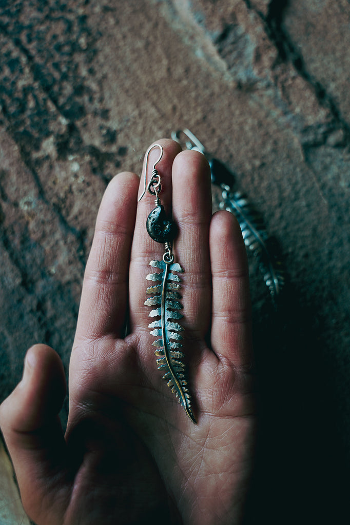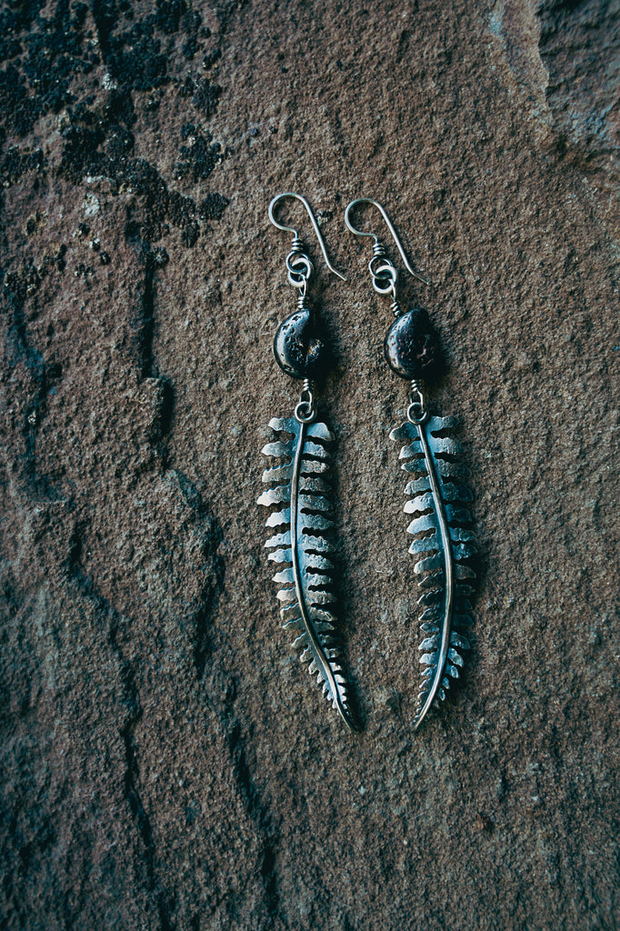 Fossilized ammonites and dimensional ferns in sterling silver.