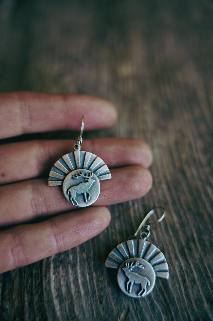 These earrings are simple and somehow ornate, simultaneously. Despite being about 1.5 inches long, they have a really beautiful weight to them. Oxidized, satin finished and lightly burnished so they glow.