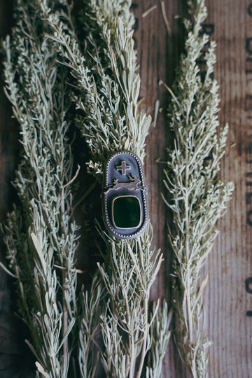 I've paired this jackrabbit with a deep green cut of Montana jade.This ring has a really lovely heft and presence to it -- earthy and peaceful, born of wide open spaces and stillness.