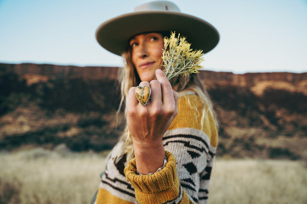 Las Cruces Ring -- Dendritic Opal -- Size 6.75