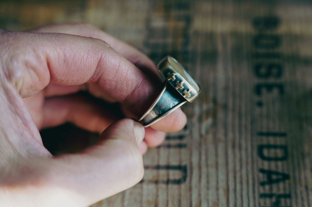 Las Cruces Ring -- Plume Agate -- Size 9