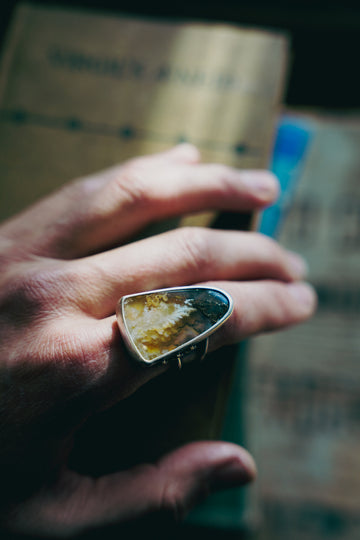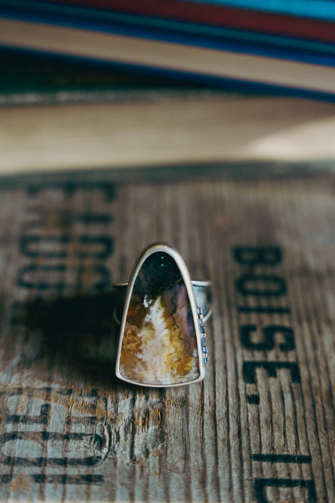Las Cruces Ring -- Plume Agate -- Size 9.5