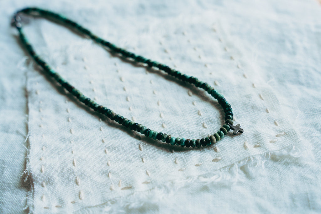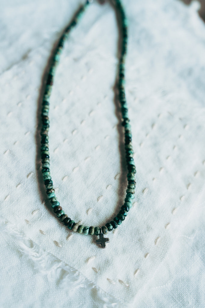 Light Burden Necklace -- Small Cross With Jasper Beads