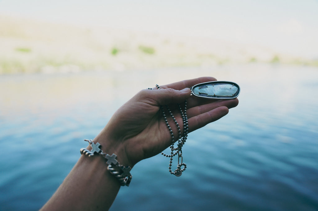 Necklace B -- 29 inch chain (super heavy ball chain), 3.25 inch long pendant