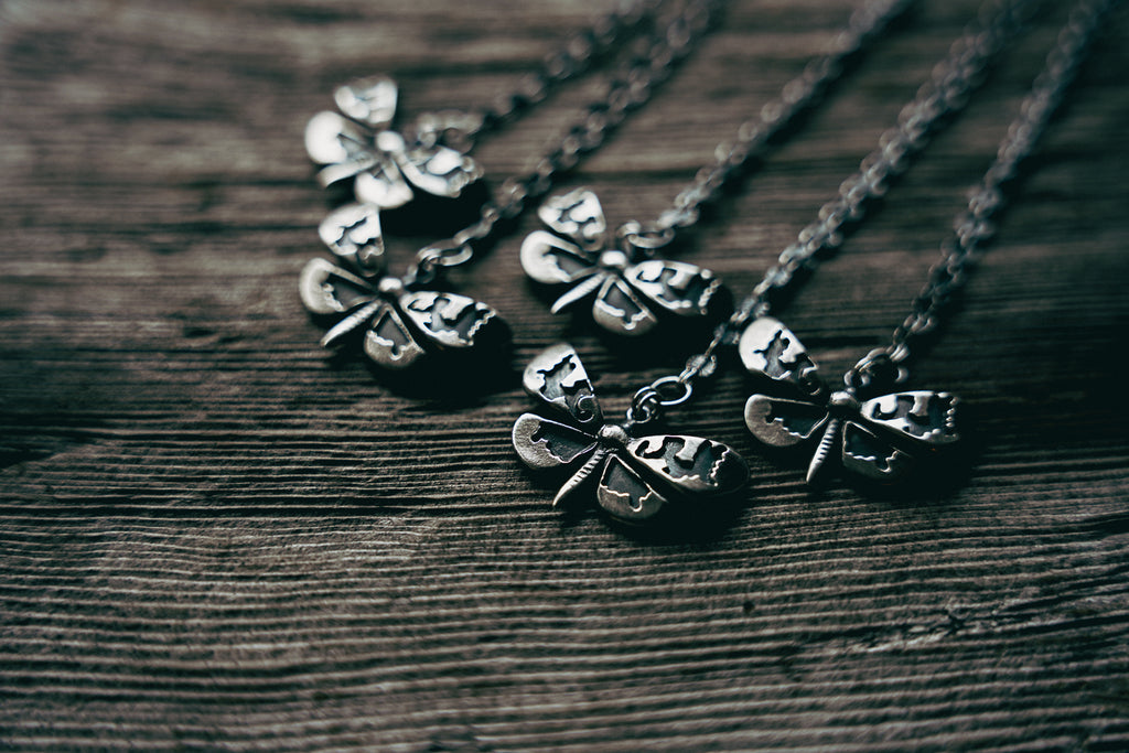 One beautiful, dimensional butterfly on delicate but ornate chain. This necklace design is one of my top ten favorite designs. I love it. The robust and thrumming life of my gardens inspired it. It is elegant, it speaks to the quiet beauty of nature and it has a perfect combination of elements. I'm so pleased with it...it pleases me as much as the real thing, as much as sitting in my flower garden watching the moths, butterflies, bees and hummingbirds in the blossoms I grew specifically for them. Being alive is a kind of labor of love. This necklace makes me feel it all.