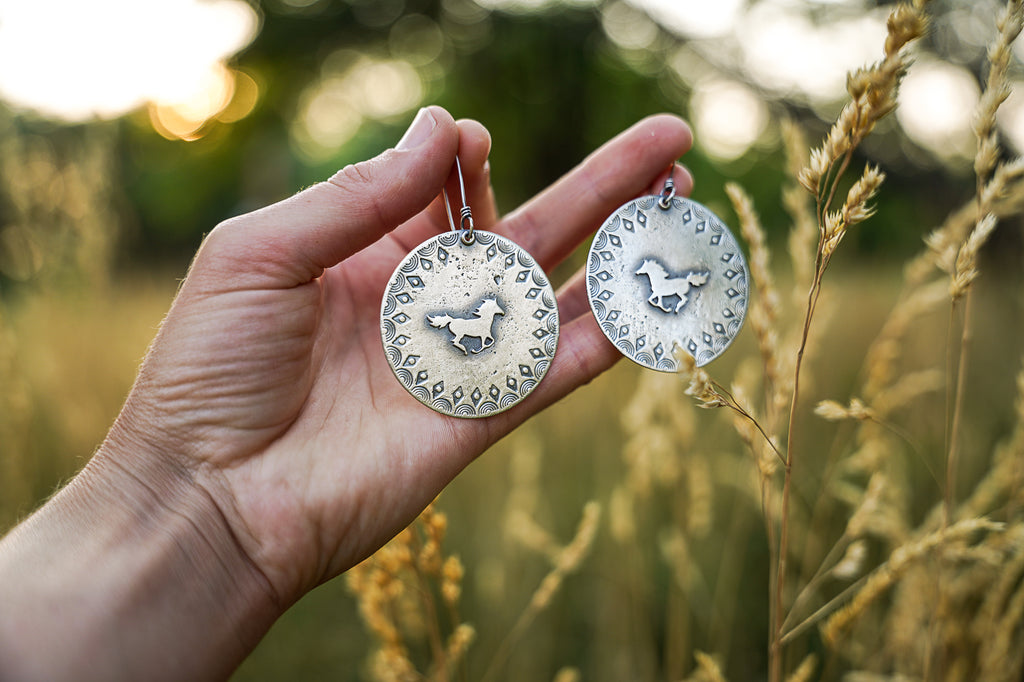 Textured and stamped by hand, decorated with horse appliqués, and finished by hand with the glowing satin sheen sterling silver deserves.