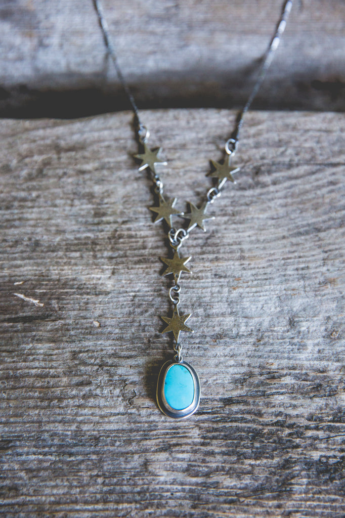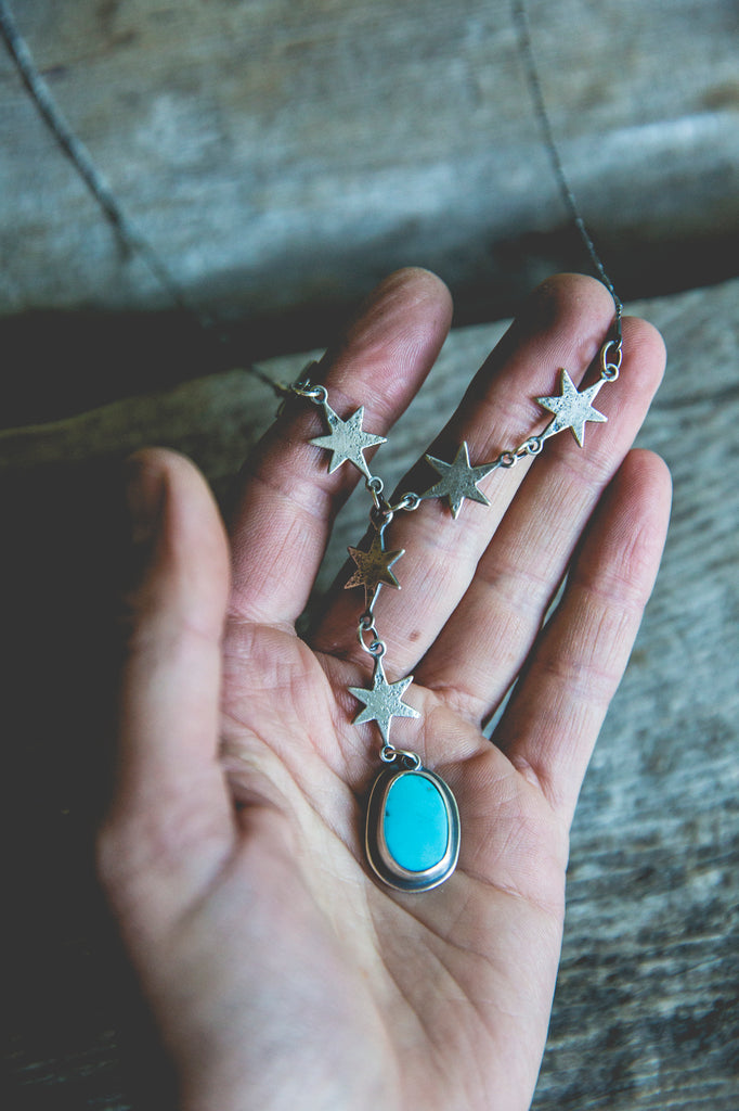 Beautiful, sky-bright American turquoise paired with a spangling of sterling silver stars. This piece was made to shine, so were you. Shine on.