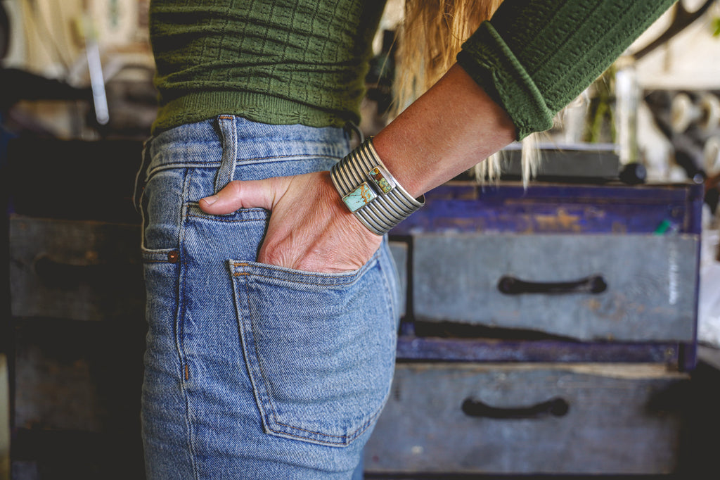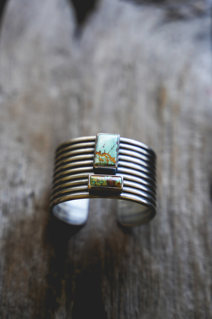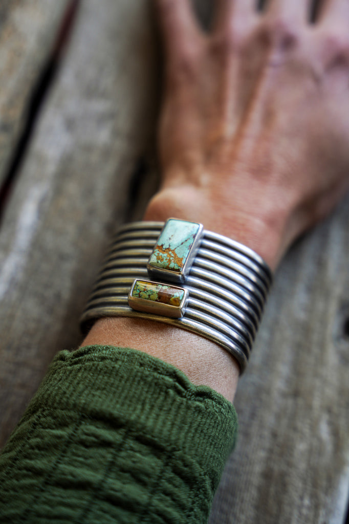 I made the first of this cuff series for my birthday piece this year and wore it all over the southwest as we camped and hunted and explored with our horses and dogs -- it's become a piece I wear daily. My arm feels unanchored without the weight and presence of it.