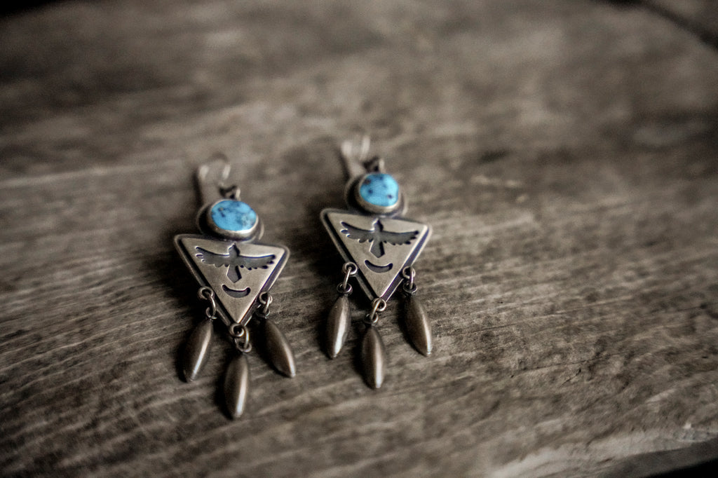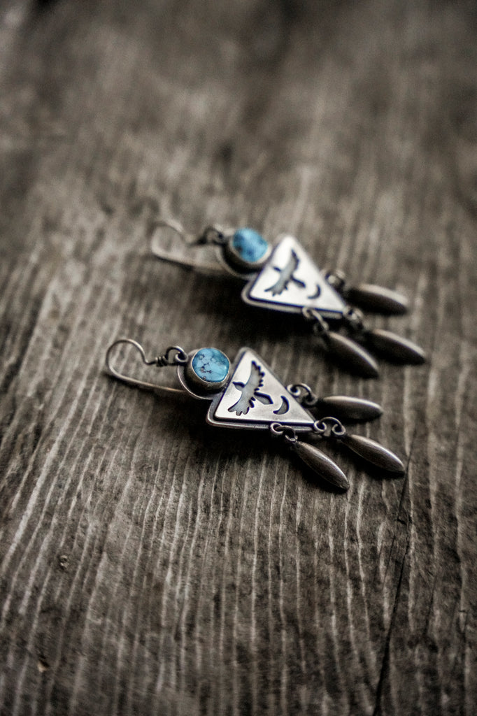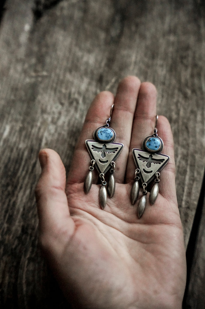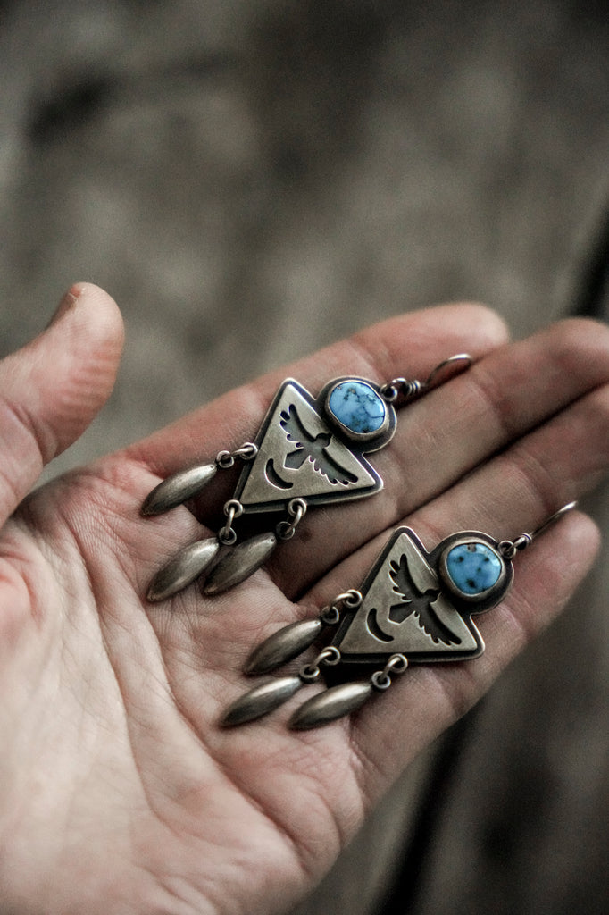 Sterling silver overlay paired with my jingles and some beautiful, bright cuts of American Turquoise.