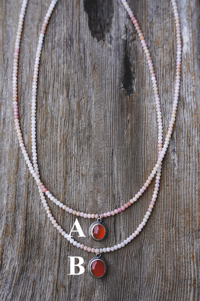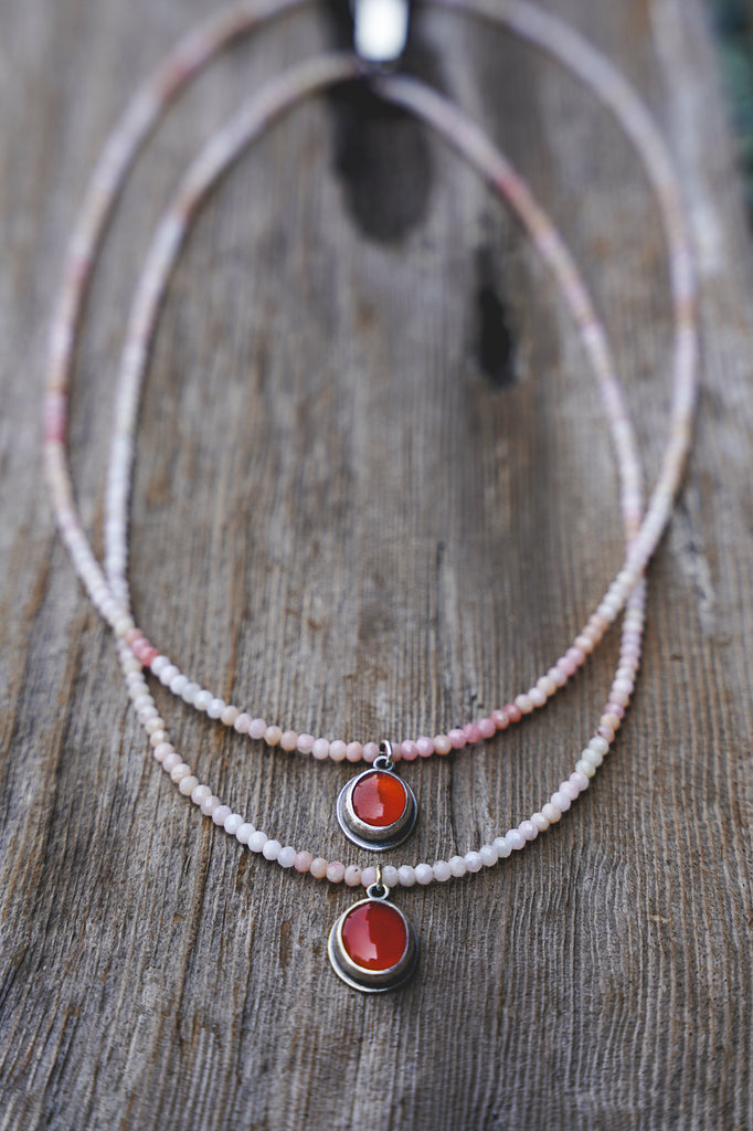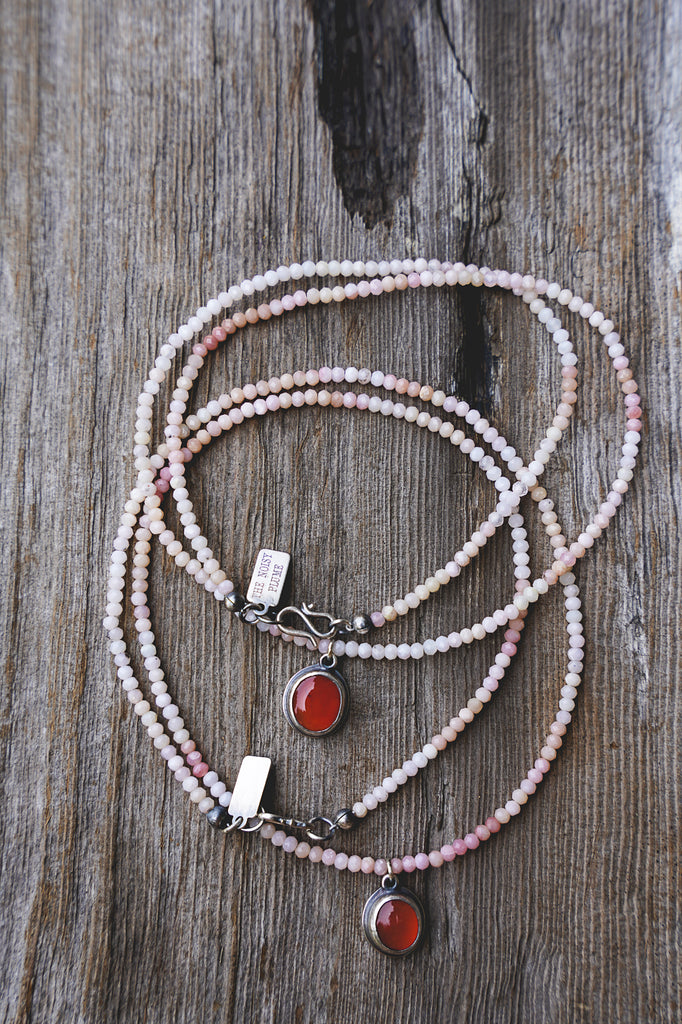 These necklaces look gorgeous alone against sun burnished skin and really lovely layered up with other necklaces, too. Built to go with your bikini or your pearl snap. Let your sartorial sensibilities lead the way.
