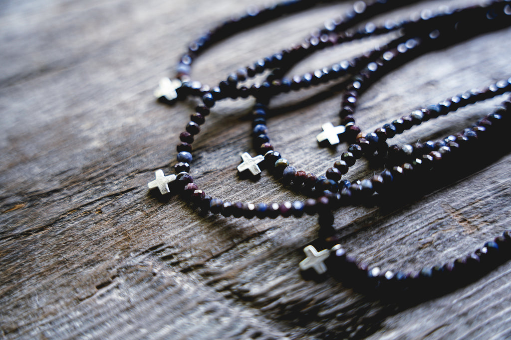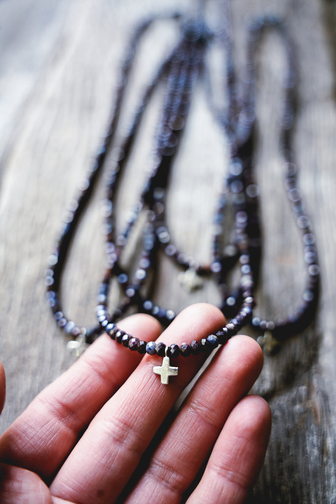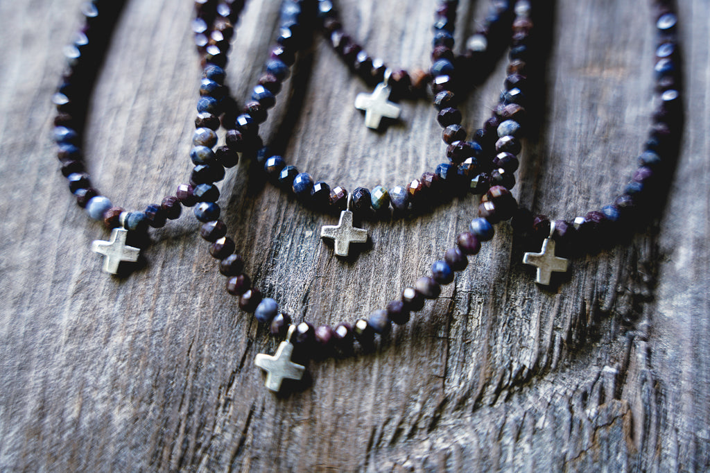 Twinkly, faceted sapphires paired up with my gritty sterling square crosses and sterling silver finishes.