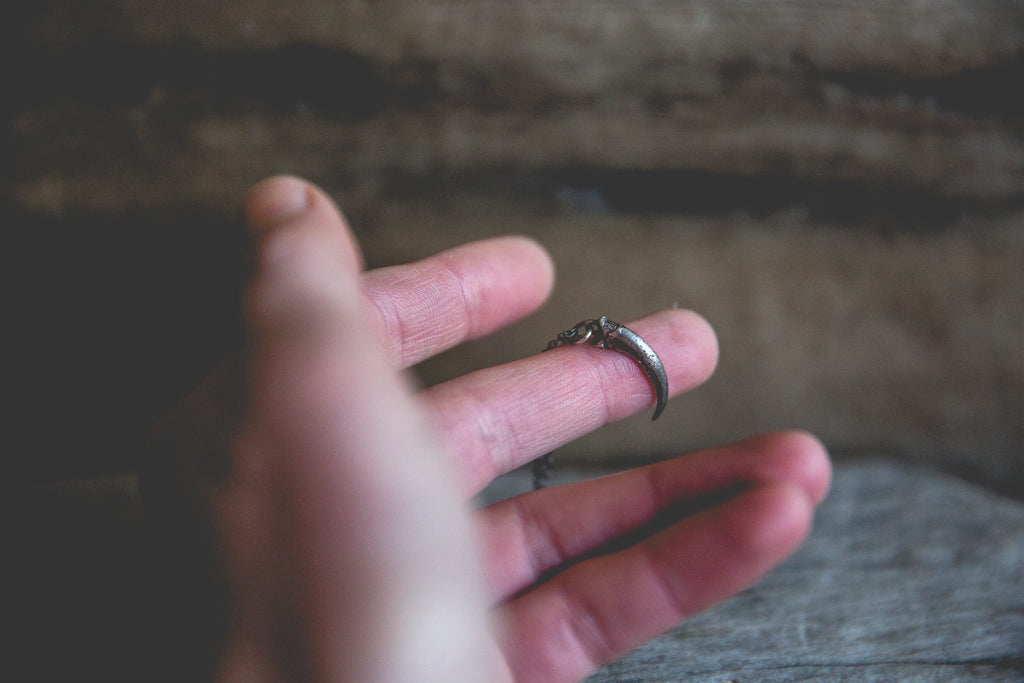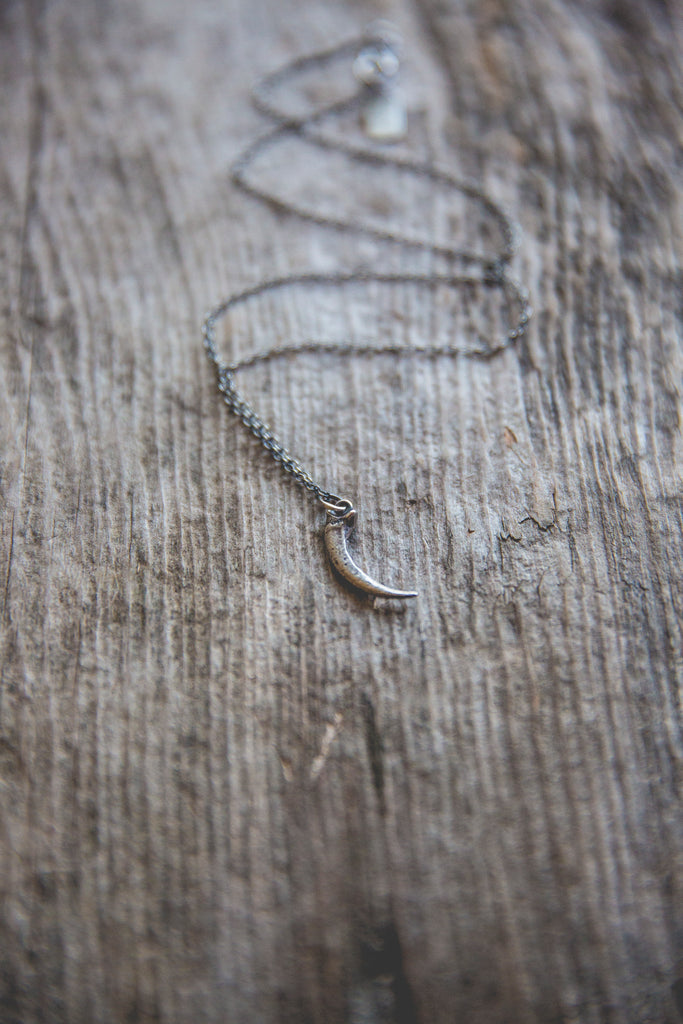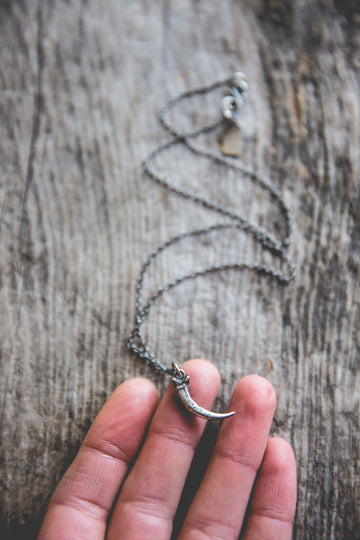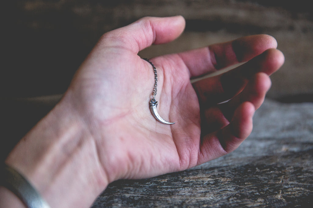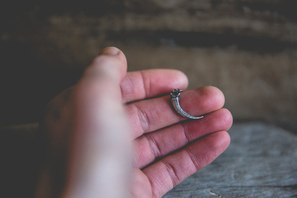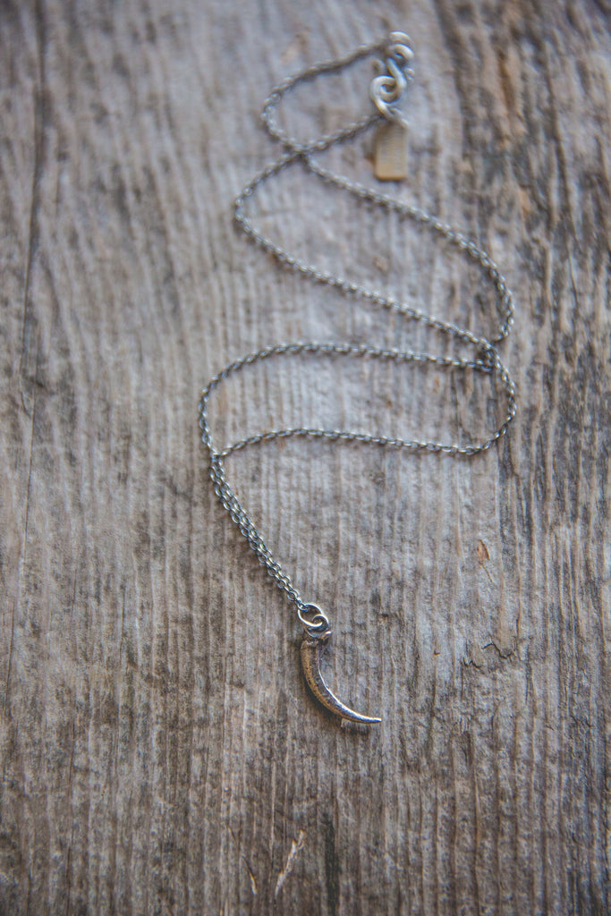 A ferruginous hawk talon cast in solid sterling silver -- for everyday wear. Beautiful alone, gorgeous when layered with other necklaces. A shiny reminder that optimism and hope are the ultimate rebellion.